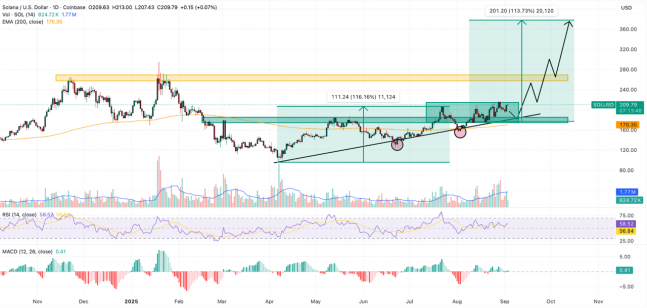 과거 솔라나가 직전 상승장에서 보여준 패턴을 분석한 결과인데요. 당시 약 120%의 엄청난 랠리를 기록했던 것을 감안하면, 이번 사이클에서도 비슷한 흐름이 반복될 경우 최소 375달러까지 상승할 수 있다는 분석이 나오고 있습니다. 물론 과거 데이터가 미래를 보장하는 것은 아니지만, 충분히 기대해 볼 만한 시나리오네요!