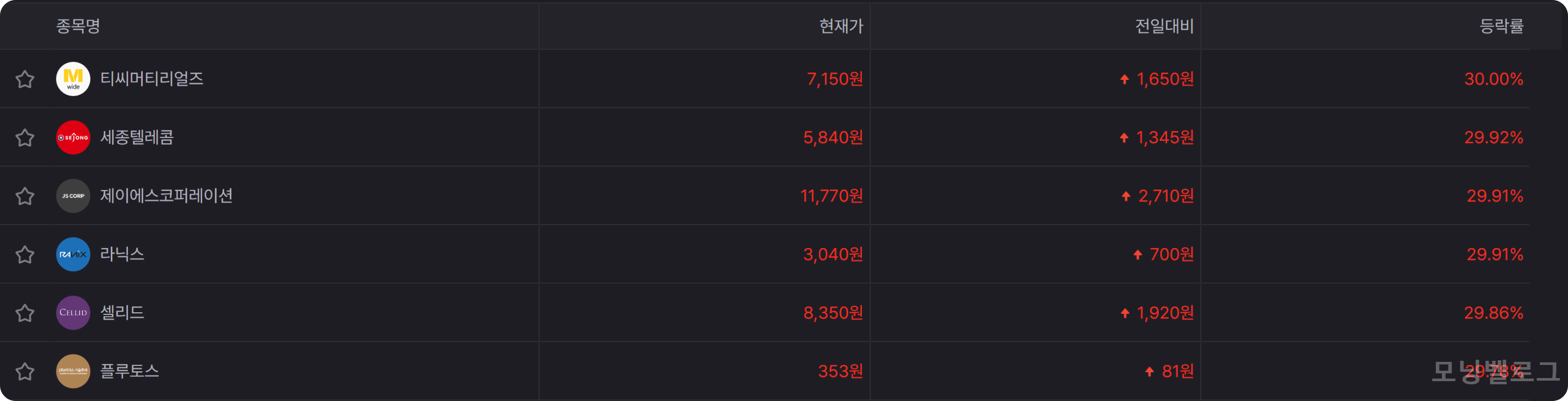- 현재가: 7,150원 (전일 대비 +30.00% 상한가)