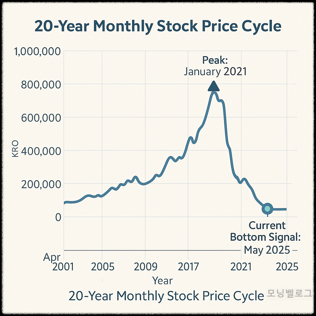 LG화학은 국내를 대표하는 화학 기업으로 오랜 기간 투자자들의 관심을 받아왔습니다. 특히 2차전지 소재 사업의 부각으로 큰 시세 분출을 경험하기도 했는데요. 이번 분석에서는 LG화학의 지난 20여 년간의 월봉 차트 흐름을 통해 장기적인 추세, 주요 변곡점, 그리고 현재 주가의 위치를 기술적 관점에서 심층적으로 살펴보겠습니다.